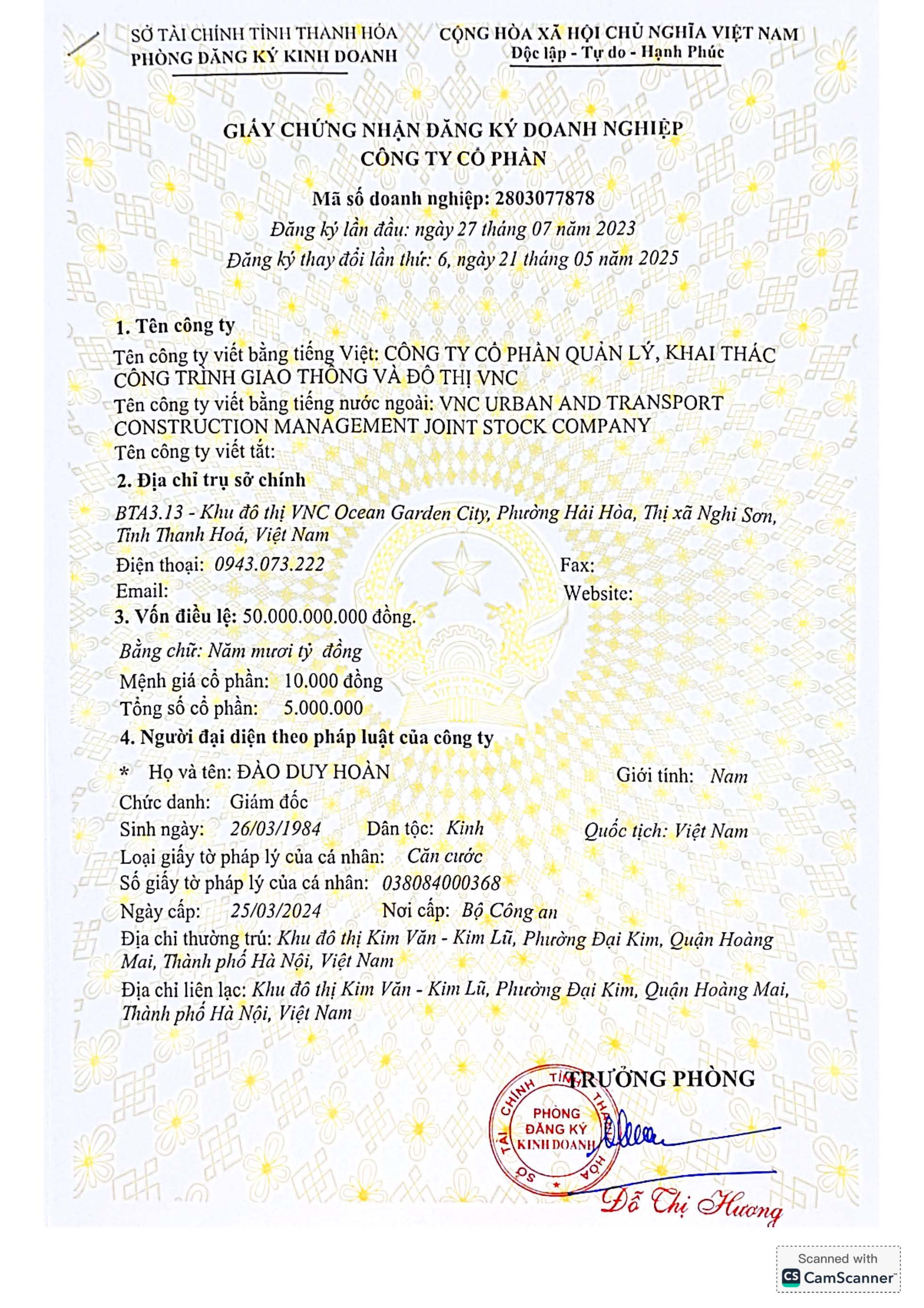 CÔNG TY CỔ PHẦN QUẢN LÝ, KHAI THÁC CÔNG TRÌNH GIAO THÔNG ĐÔ THỊ VNC