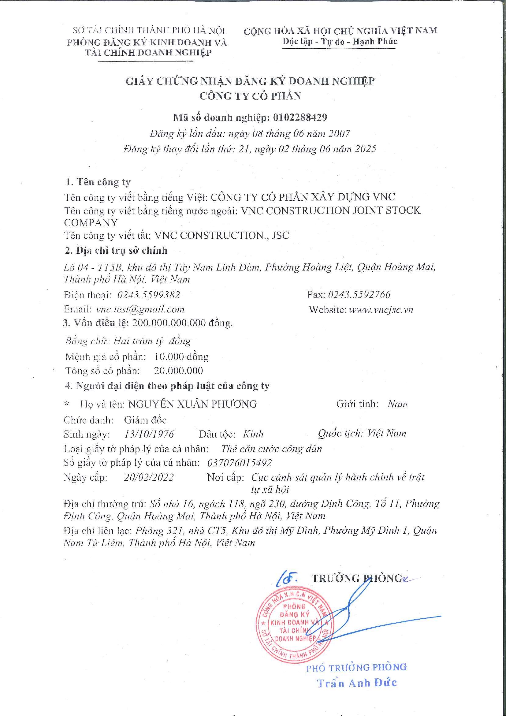 CÔNG TY CỔ PHẦN XÂY DỰNG VNC