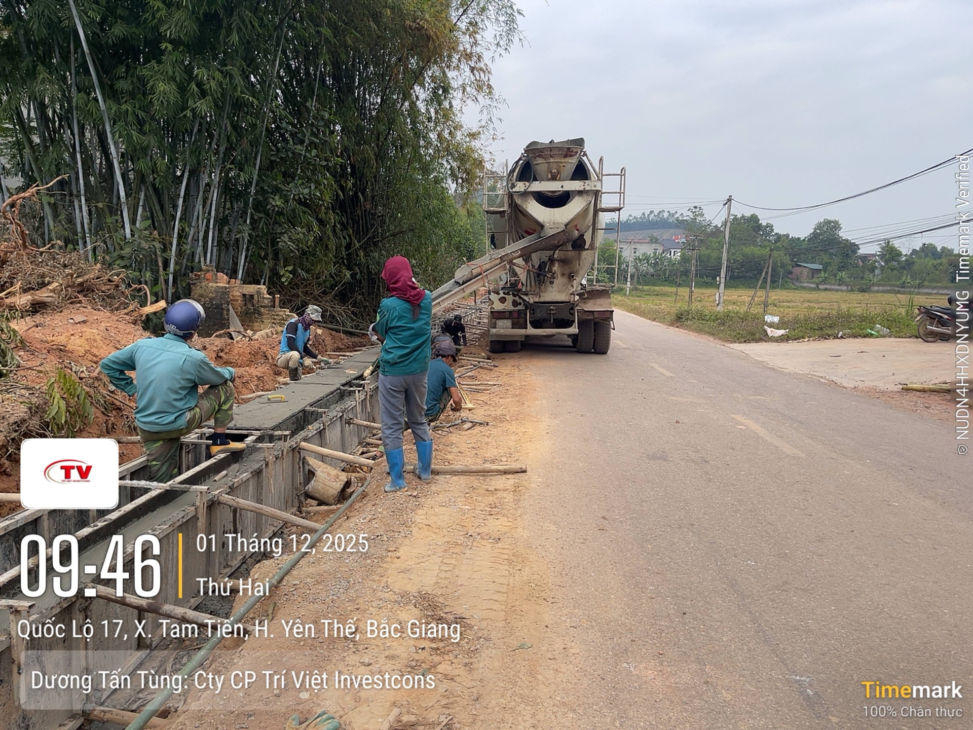 Ngày 01/12/2025, Công ty CP Trí Việt Investcons tiếp tục báo cáo tiến độ chi tiết tại dự án Sửa chữa hư hỏng nền, mặt đường và công trình trên tuyến QL17 đoạn Km94+00 – Km98+900, tỉnh Bắc Giang. Mục tiêu của chúng tôi là đảm bảo chất lượng công trình và bàn giao đúng thời hạn. Trong ngày hôm nay, công tác chủ yếu được tập trung vào việc hoàn thiện hệ thống rãnh thoát nước dọc tuyến.